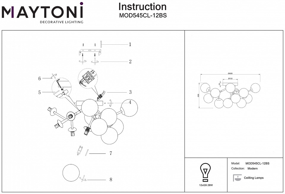 Потолочная люстра Dallas MOD545CL-12BS Maytoni