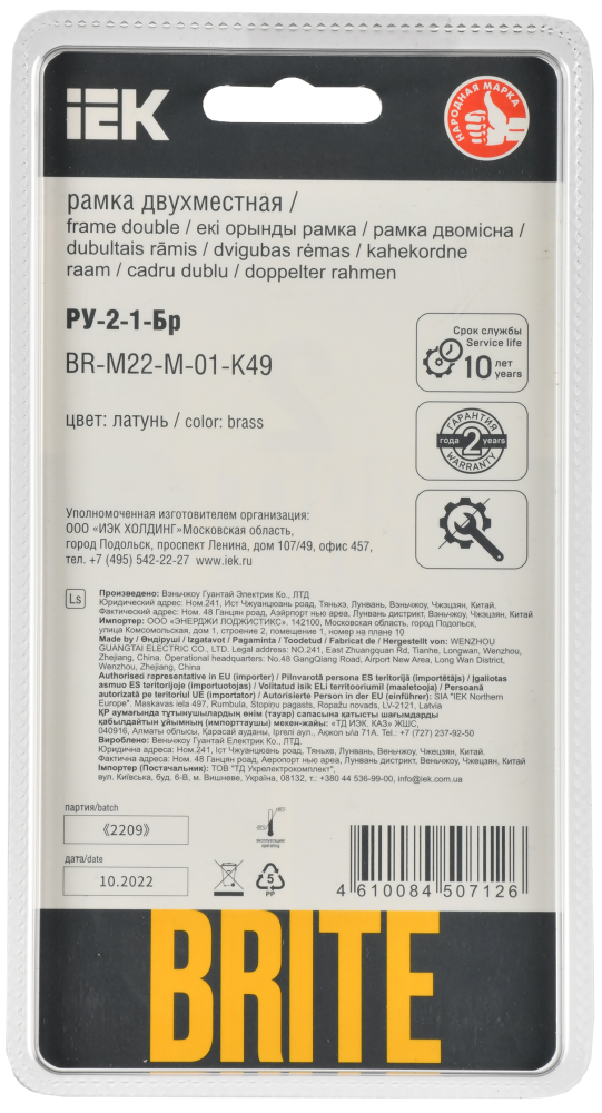 Рамка 2-я Металл Латунь Brite в Иркутске