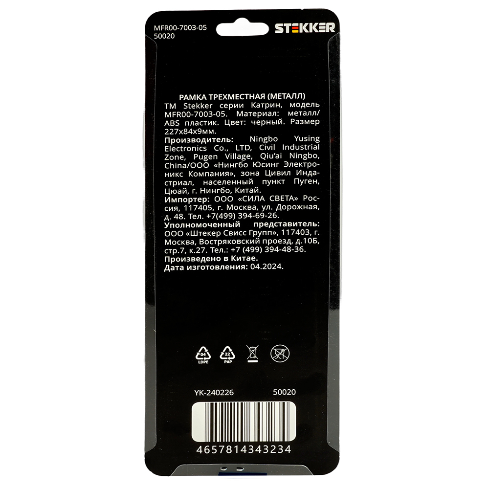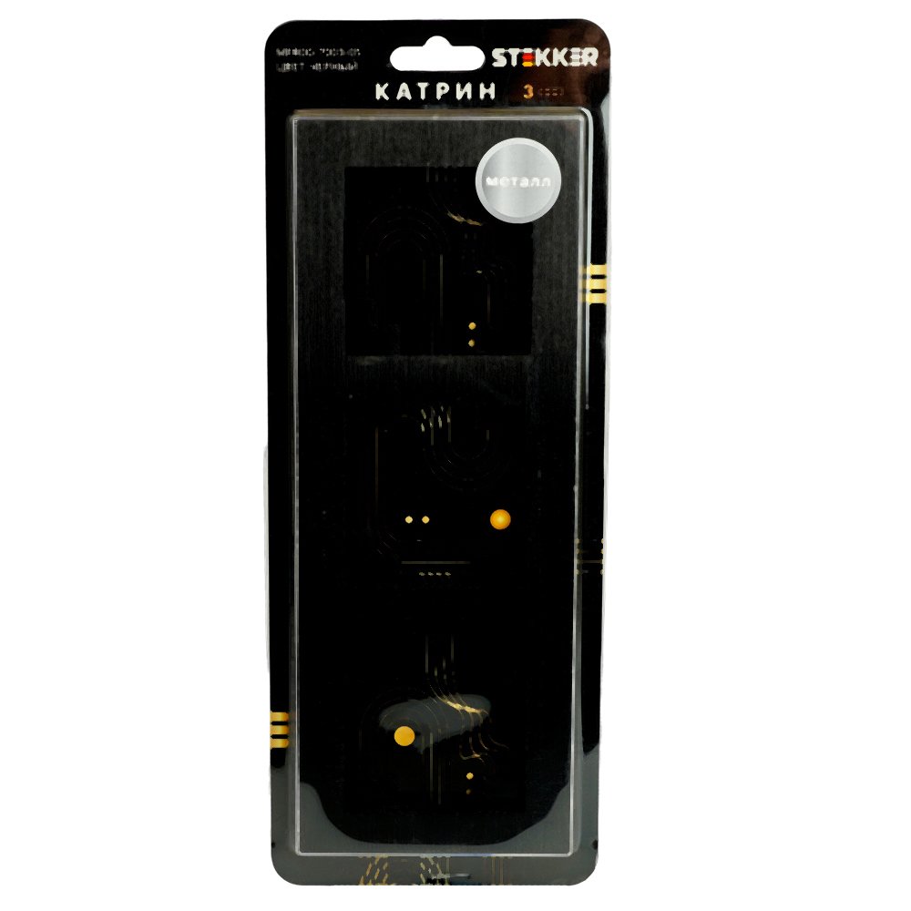 Производитель STEKKER Полное наименование Рамка 3-я металл Черный Катрин Код производителя (Артикул) 50020 Серия Катрин Код Просвет 017800 Высота изделия 9 Единица измерения шт Высота Упаковки, мм 12 Длина Упаковки, мм 232 Цвет Черный -