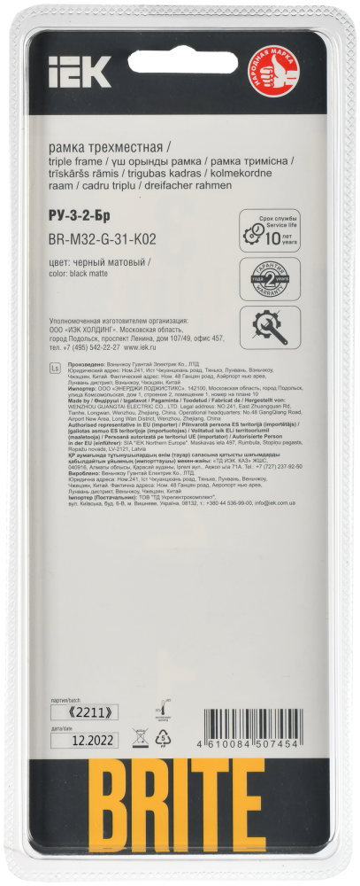 Производитель IEK (ИЭК) Полное наименование Рамка 3-я Стекло Черный матовый Brite Код производителя (Артикул) BR-M32-G-31-K02 Серия Brite Код Просвет 021927 Глубина, мм 10.3 Количество постов (мест) 3.0 Материал Стекло Подходит для установки в кабель-канал Нет Прозрачный Нет С откидной крышкой Нет Степень защиты (IP) IP20 Тип поверхности Матовый (-ая) Высота, мм 88 Цвет Черный -