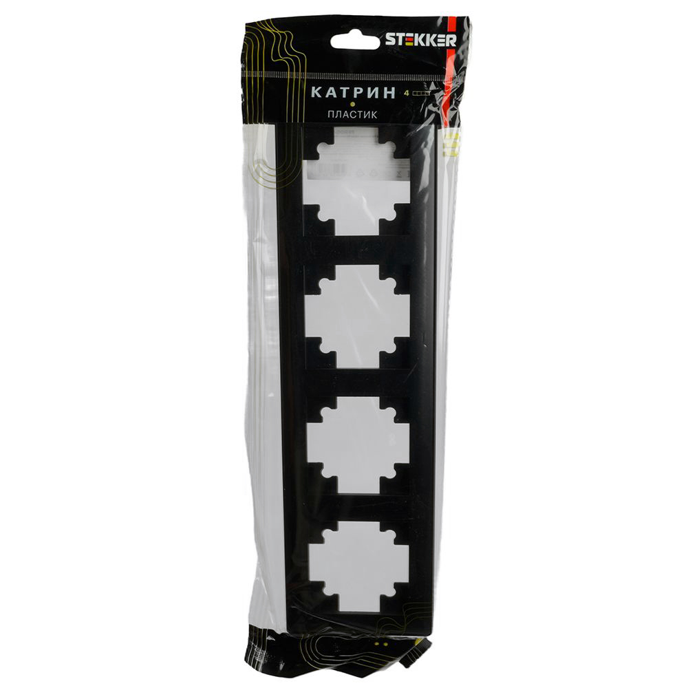 Производитель STEKKER Полное наименование Рамка 4-я Черный Катрин Код производителя (Артикул) 39815 Серия Катрин Код Просвет 014421 Единица измерения шт Ширина Упаковки, мм 94 Цвет Черный -
