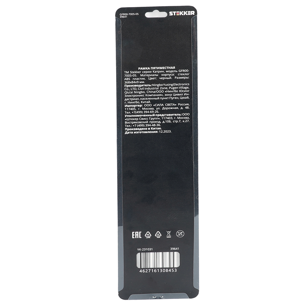 Производитель STEKKER Полное наименование Рамка 5-я стекло Черный Катрин Код производителя (Артикул) 39641 Серия Катрин Код Просвет 014110 Высота изделия 9 Единица измерения шт Высота Упаковки, мм 10 Длина Упаковки, мм 400 Ширина Упаковки, мм 94 Цвет Черный -