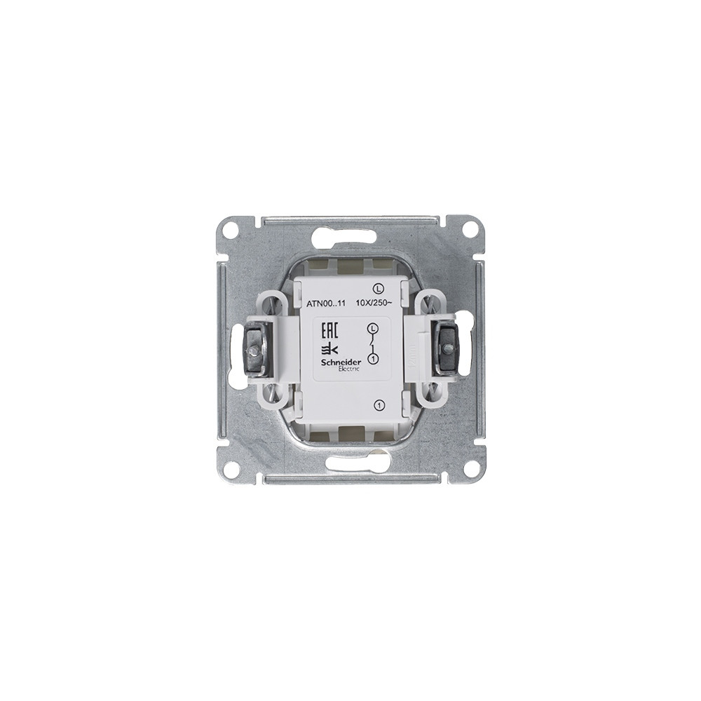 Механизм Schneider Electric AtlasDesign (цвет алюминий) выключателя 1-клавишного подходит для сетей 250 В, на ток 10 А.- Усиленные прямые монтажные лапки для лучшей фиксации механизма в монтажной коробке.- Лицевые детали из качественного ABS-пластика, устойчивого к царапинам и УФ-излучению.