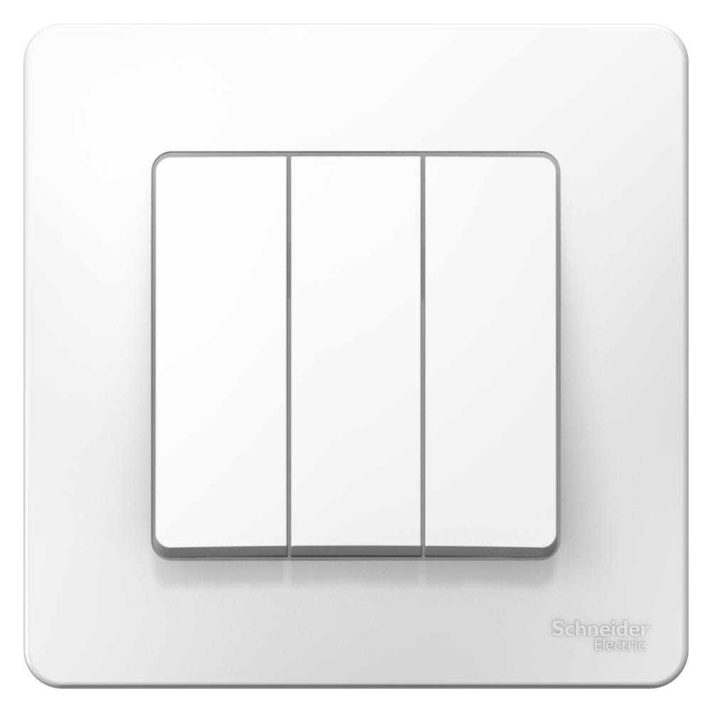 Выключатель Schneider Electric BLANCA (белый, скрытой установки) трехклавишный предназначен для сетей до 250В, на ток до 10А. Подсветка делает его легко находимым в отсутствие освещения. Трехклавишный выключатель позволяет управлять тремя источниками света из одной точки.