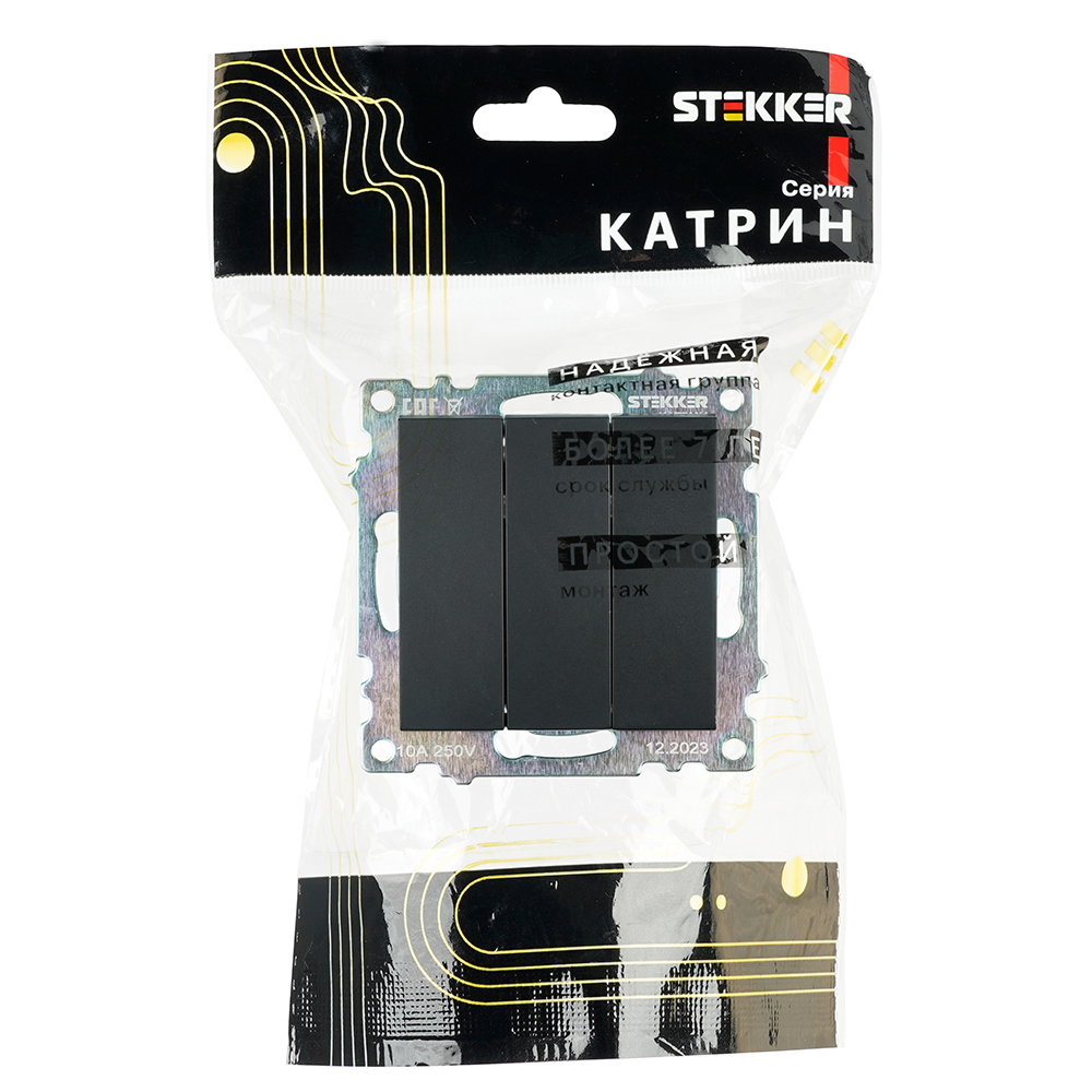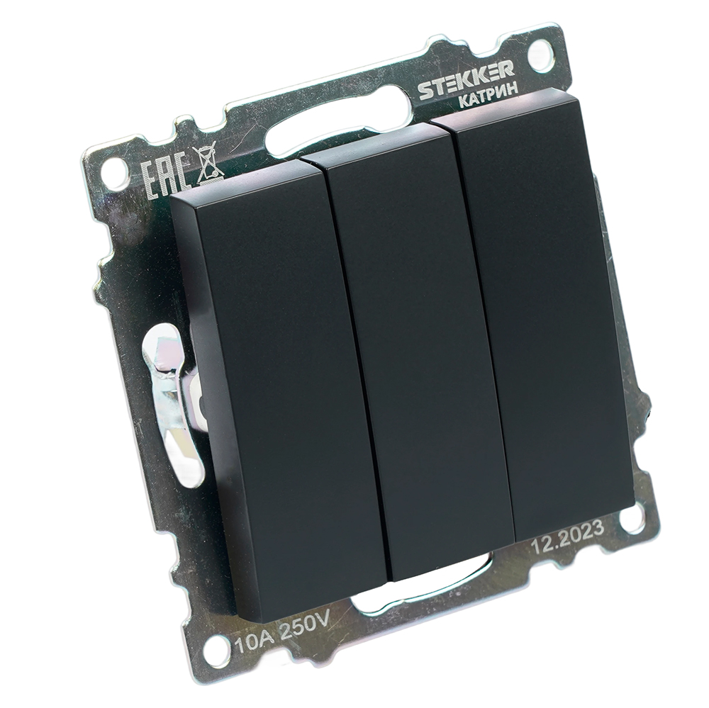 Выключатель 3-кл 10А С/У Черный Катрин в Иркутске