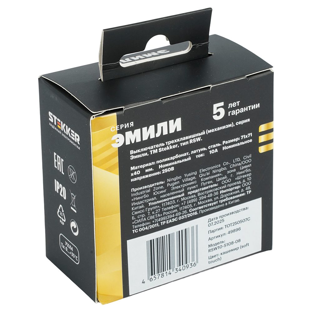 Производитель STEKKER Полное наименование Выключатель 3-кл 10А С/У Кашемир Эмили Код производителя (Артикул) 49896 Серия Эмили Код Просвет 013905 Высота изделия 40 Напряжение лампы, В 250 Номин. ток 10.0 Гарантийный срок, г 5 лет Единица измерения шт Степень защиты (IP) IP20 Цвет подсветки - Высота Упаковки, мм 80 Длина Упаковки, мм 80 Цвет кашемир, soft touch -
